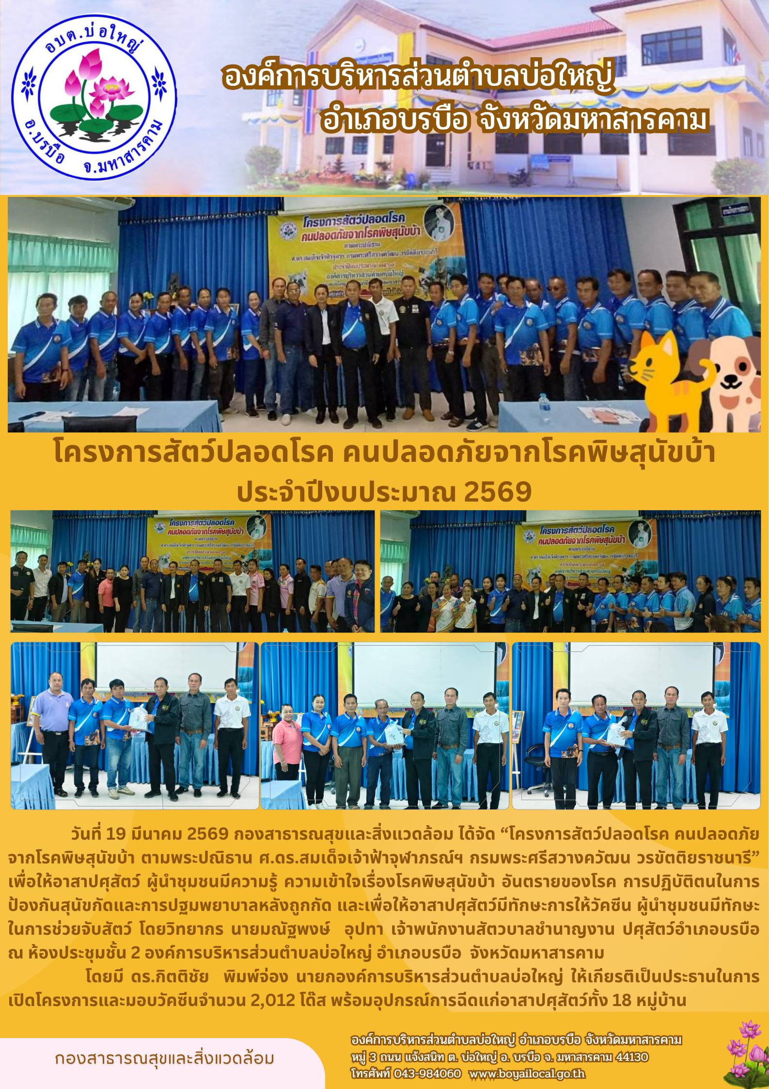 โครงการสัตว์ปลอดโรค คนปลอดภัย จากโรคพิษสุนัขบ้าฯ ประจำปีงบประมาณ พ.ศ. 2569