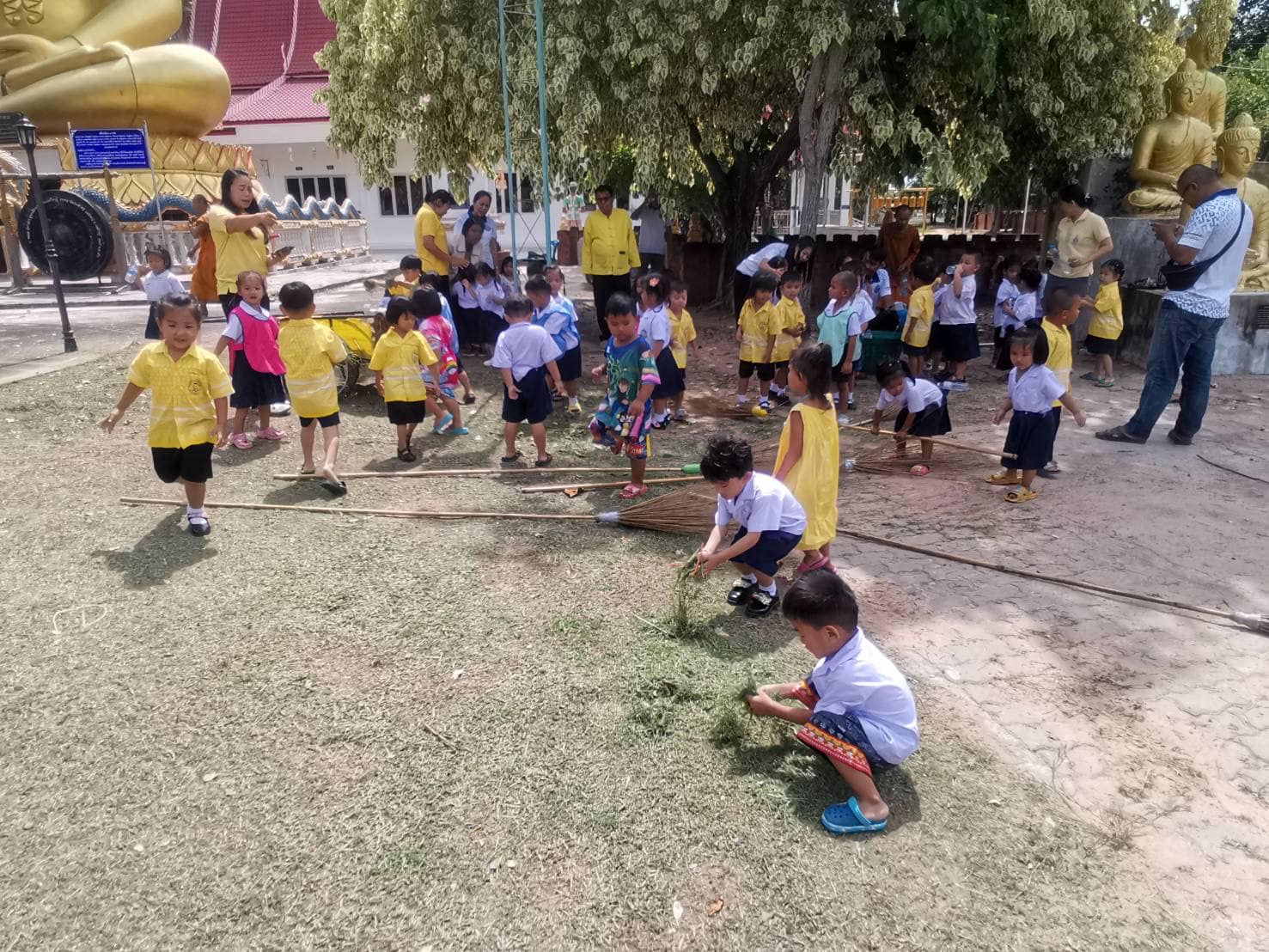 บริเวณวัดโพธิ์ศรีบ้านบ่อใหญ่เพื่อปลูกฝังให้เด็กๆ รู้จักบำเพ็ญประโยชน์เพื่อสังคม